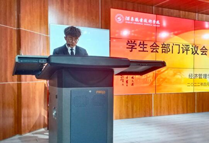 2022年4月19日晚,经济管理学院团委、学生会部门评议会议在经世楼107胡杨大讲堂召开。学院副院长杜静、团委书记王雅靖、院团委学生会全体成员和各团支部代表参加本次会议。