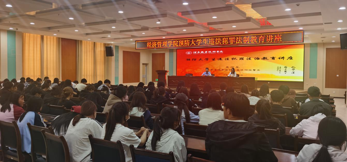 酒泉监狱六监区四级警长吴迎龙面向全体在校生开展了预防大学生违法犯罪法治教育讲座。