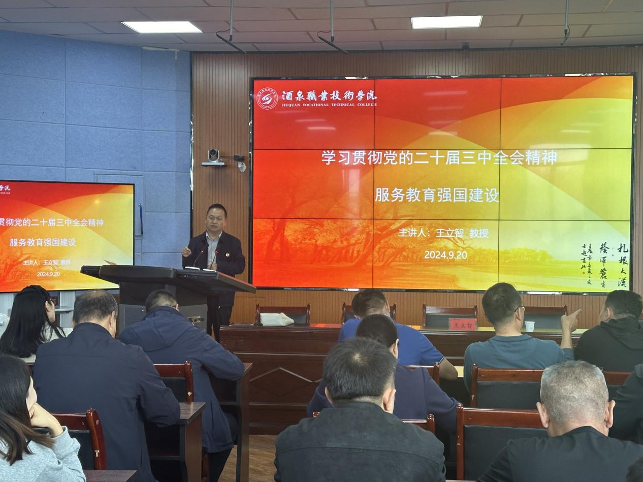 专题党课上,王立智教授从“党的二十届三中全会精神融入高校教育教学的时代意蕴、融入教育教学的逻辑架构、融入教育教学的实施路径”三方面进行了讲授。王立智教授指出,作为高校教师,如何贯彻落实党的二十届三中全会精神,在教育教学过程中,充分发挥教育服务国家战略发展功能,凝聚思想合力,为实现中国式现代化贡献力量。
