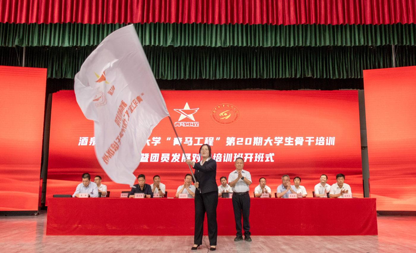 为深入学习贯彻习近平新时代中国特色社会主义思想,进一步强化青年学生思想政治引领,5月20日下午,酒泉职业技术大学隆重举行“青马工程”第二十期大学生骨干培训班暨团员发展对象培训班开班仪式。学校党委书记易志军,党委副书记王立智,党委委员、组织部部长茹立军,党委委员、宣传统战部部长李文有出席开班式。学工部、马克思主义学院、团委等部门负责人,各学院党支部副书记、团委书记及全体培训班学员参加仪式。