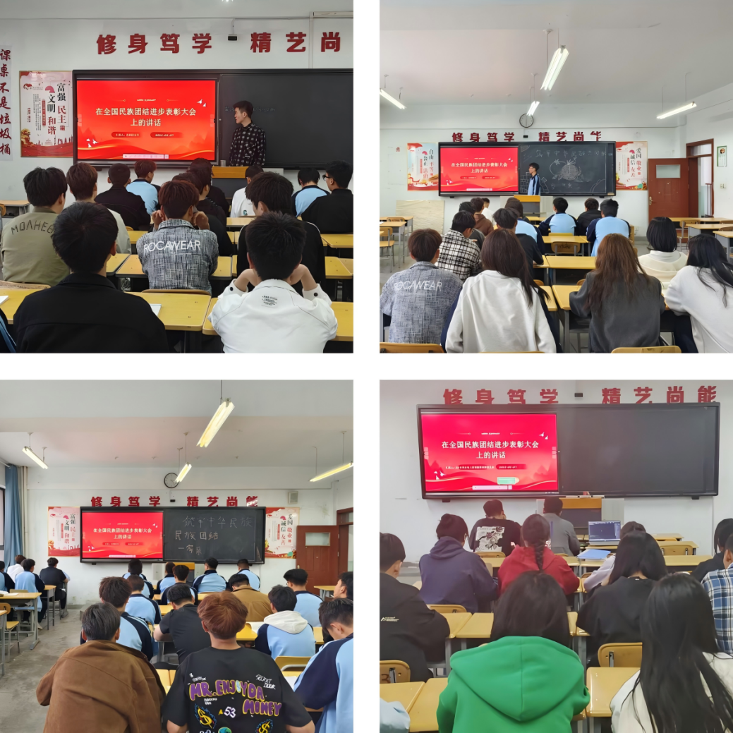 观影结束后,学院组织各班级开展“筑牢中华民族共同体意识 同心共筑中国梦”主题班会。各班团支书带领同学们深入学习习近平总书记在全国民族团结进步表彰大会上的重要讲话精神,通过视频学习、政策解读学习等方式,深刻领会“中华民族是多元一体的伟大民族”的丰富内涵。