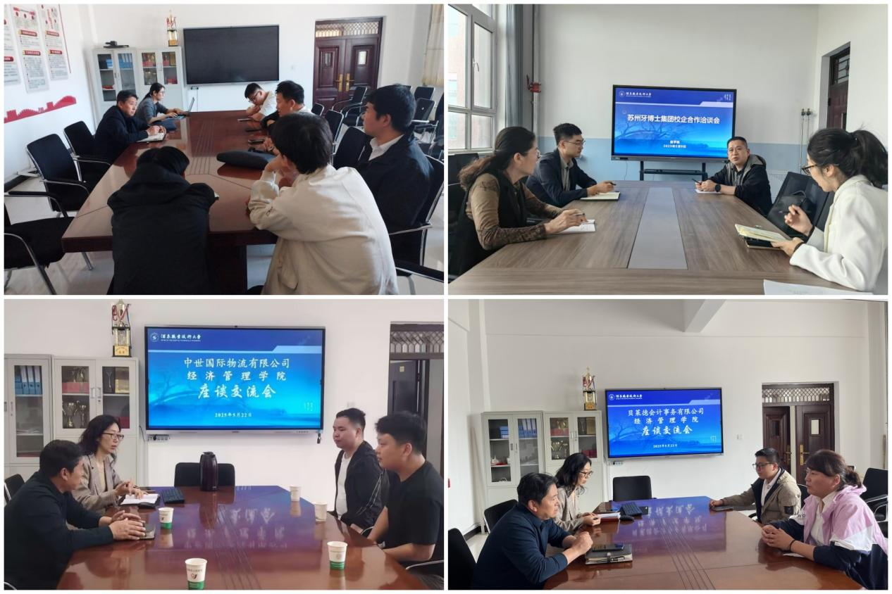 学院领导先后与嘉兴中润光学科技股份有限公司、佛吉亚(嘉兴)汽车部件系统有限公司、浙江隆聚餐饮集团股份有限公司、嘉兴沃尔德金刚石工具有限公司、牙博士医疗控股集团股份有限公司、甘肃顺硕科技有限公司、中世国际物流有限公司、贝莱德会计事务有限公司、甘肃巨龙供销(集团)股份有限公司、甘肃海涛(物流)集团有限公司等十家来校企业代表开展了座谈交流,就深化校企合作、拓宽就业渠道等事宜进行了深入探讨。