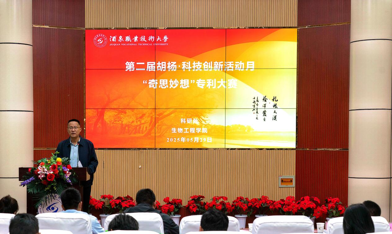 5月29日下午,酒泉职业技术大学第二届“奇思妙想”专利大赛决赛在逸夫楼报告厅隆重举行。学校党委委员、副校长王金明出席活动,科研处、创新创业学院负责人及各学院参赛团队和师生代表参加,生物工程学院党支部书记、院长张涛主持活动。