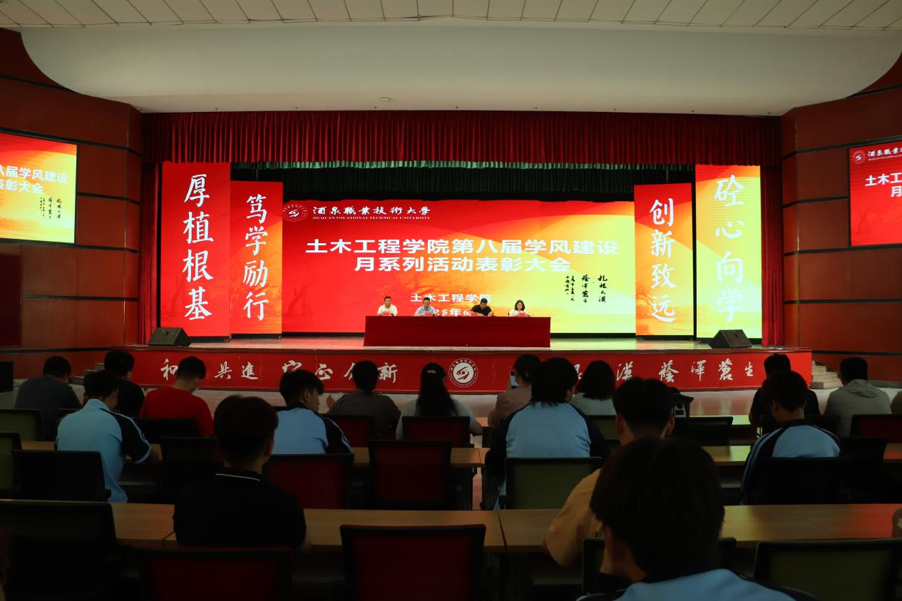 学院副院长马宏宣读《土木工程学院关于“第八届学风建设月”主题活动的表彰决定》文件,并为获奖集体和个人颁发了荣誉证书。同时,为酒泉职业技术大学首届“知行砺能·赋能成长”运动会中表现优秀的学院运动员颁发了荣誉证书。