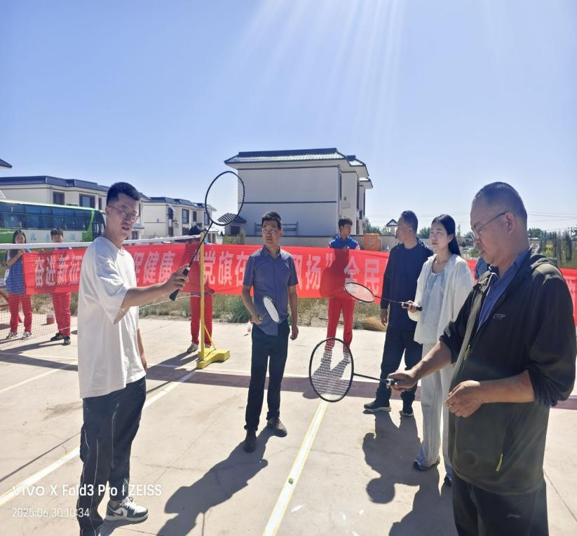 为庆祝中国共产党成立104周年,深化校地、校企合作,助力乡村振兴,6月30日,酒泉职业技术大学体育与健康学院党支部、酒泉市动感时代体育有限公司、肃州区果园乡小坝沟村村委会,在小坝沟村联合开展了“党建红引领健康绿”主题党建活动暨“奋进新征程 运动促健康”甘肃省“党旗在一线飘扬”全民健身志愿服务活动。