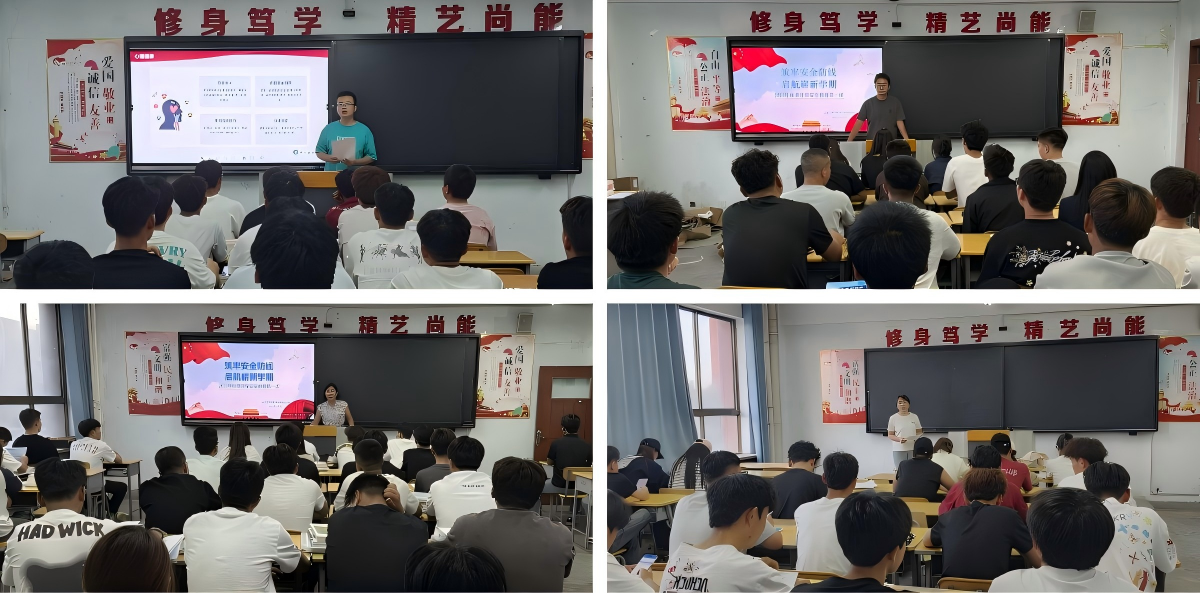 本次活动以“筑牢安全防线,守护平安校园”为主题,各班级组织开展安全教育主题班会,班主任围绕消防安全、交通安全、食品安全等十大重点领域,结合典型案例进行讲解和互动;24级学生集中观看“开学第一课”专题节目,在感人至深的爱国故事中强化家国情怀与安全意识;学生管理办公室老师与24级班主任深入学生寝室开展安全隐患排查,现场指导学生整改安全隐患。在活动中,同学们通过“理论+实践”“线上+线下”相结合的方式,将安全知识内化于心、外化于行。