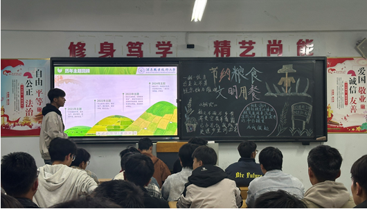 活动期间,各班级积极召开主题班会,通过播放粮食安全科普视频、讲解全球粮食供需现状、介绍我国粮食生产取得的重大成就等多种形式,帮助同学们从国家战略层面深刻认识粮食安全的深远意义,理解节约粮食不仅是一种生活习惯,更是一份沉甸甸的社会责任。