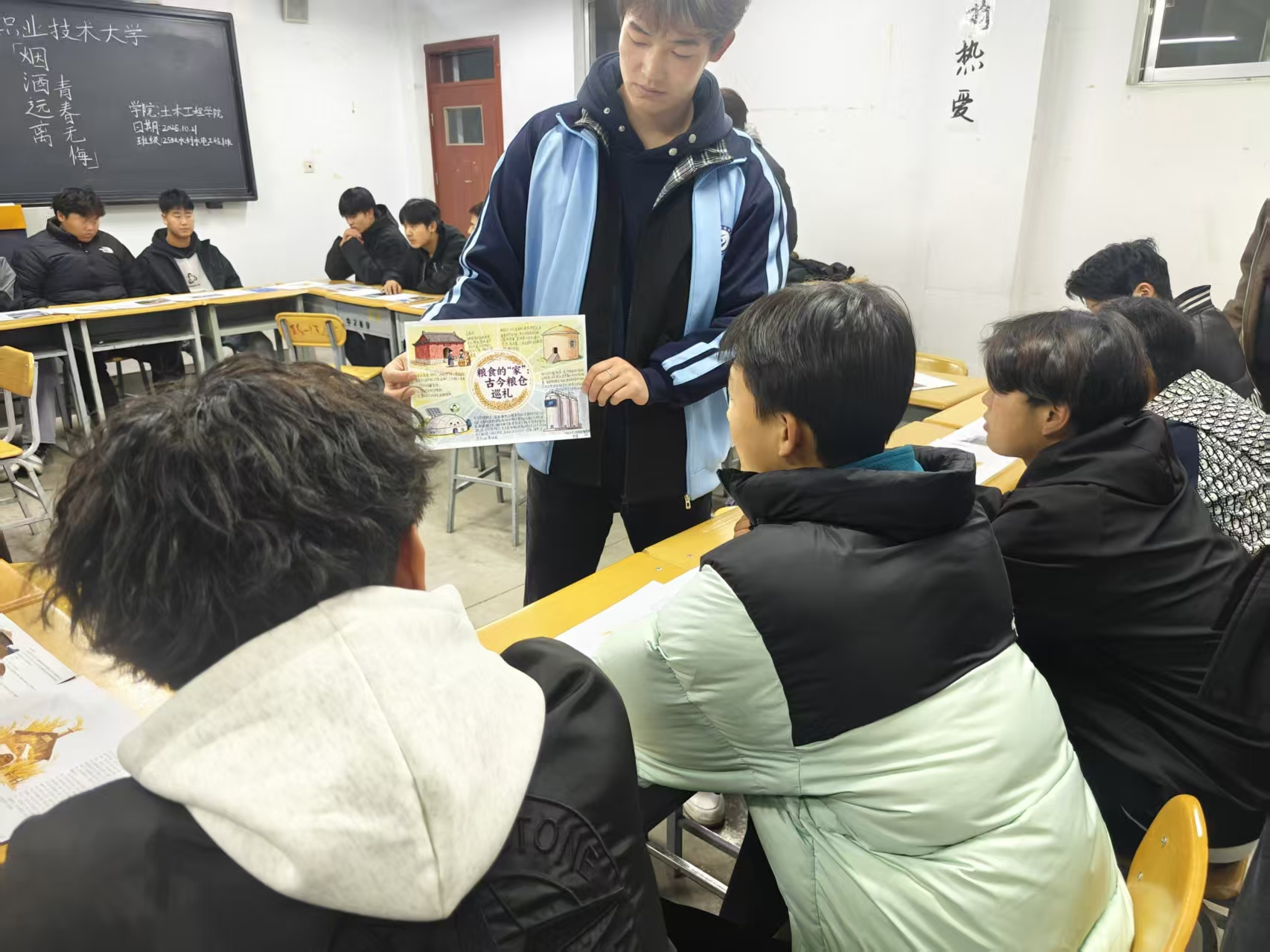 学院团学管理办公室同步举办了“粮仓的变迁与科技”图片展,以图文并茂的方式展现了从古至今粮仓的发展历程与现代储粮技术的创新成果。展览生动诠释了粮食安全在国计民生中的基础性地位,增强了同学们对粮食储备与科技保障的直观感受。