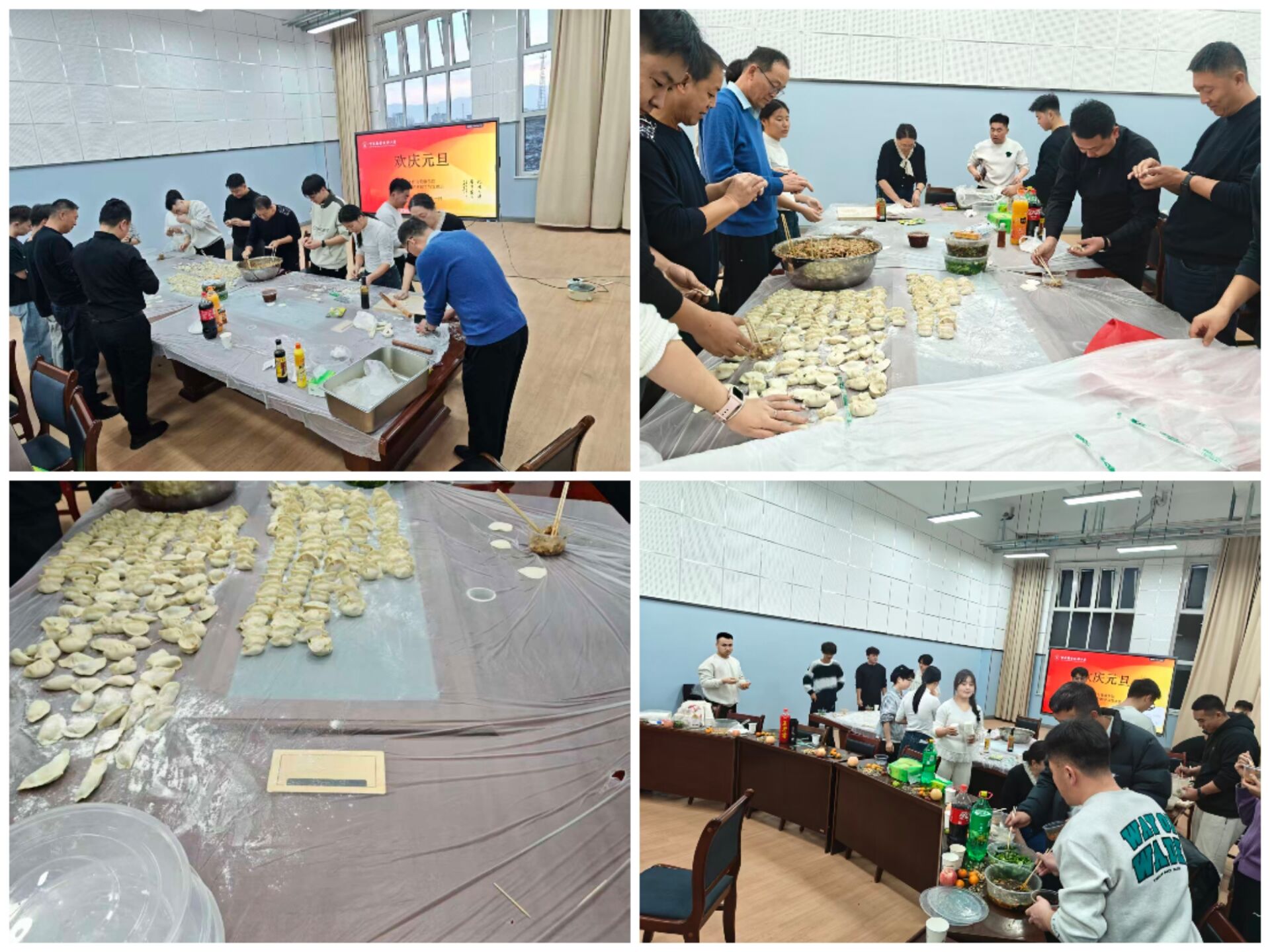 活动现场热闹非凡,暖意融融。同学们亲手包制饺子,揉面、擀皮、包馅,动作从生疏到熟练,一个个形态各异的饺子饱含着对新年的美好祝愿。啦啦操表演活力四射,尽显青春风采;武术套路刚柔并济,传承中华文化精髓;歌曲联唱深情动人,展现学子多才多艺。丰富多彩的活动充分彰显了体育人的蓬勃朝气与多面才华。