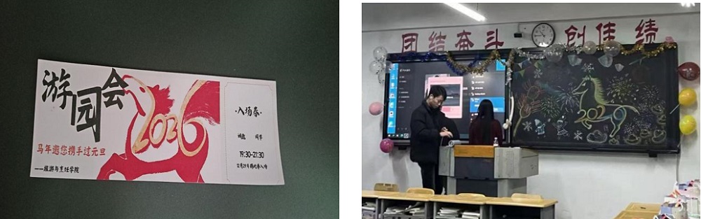为迎接2026年元旦佳节,营造欢乐祥和、文明有序的校园文化氛围,12月29日晚,旅游与烹饪学院以班级为单位,在行知楼晚自习教室及酒店烹饪实训中心同步举办“辞旧迎新贺元旦,游园喜乐启新篇”主题游园会,师生齐聚共庆佳节,开启新年序章。