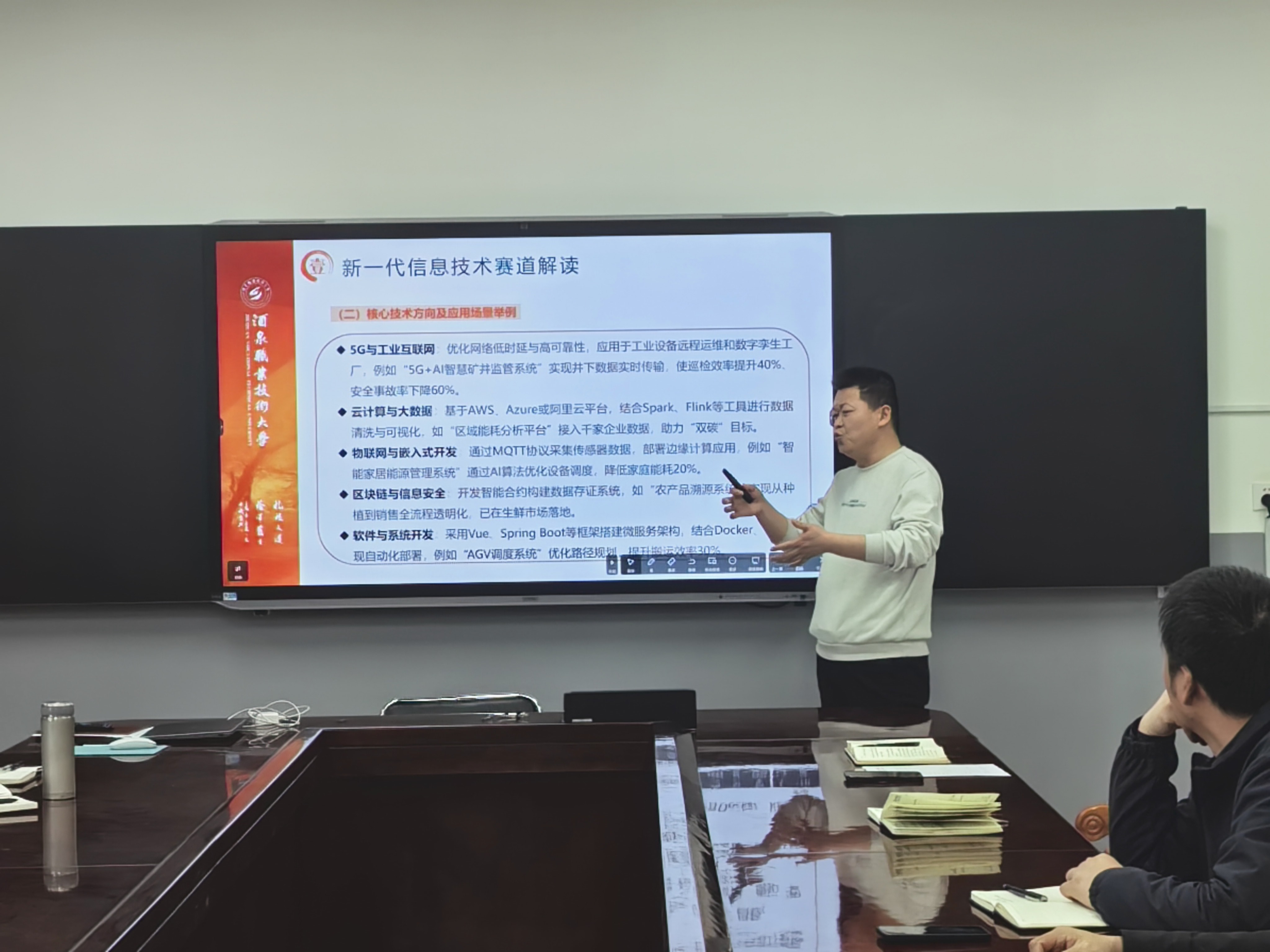 方刚、贺元等4位老师结合指导学生参加全省职业院校技能大赛新一代信息技术、人工智能赛道竞赛的经历,汇报了从团队组建、技术攻关到心理调适、临场应变的全流程辅导策略,分享了技术突破方法,为学生拓宽专业视野、锤炼创新思维、提升实践能力、培养工匠精神方面心得。