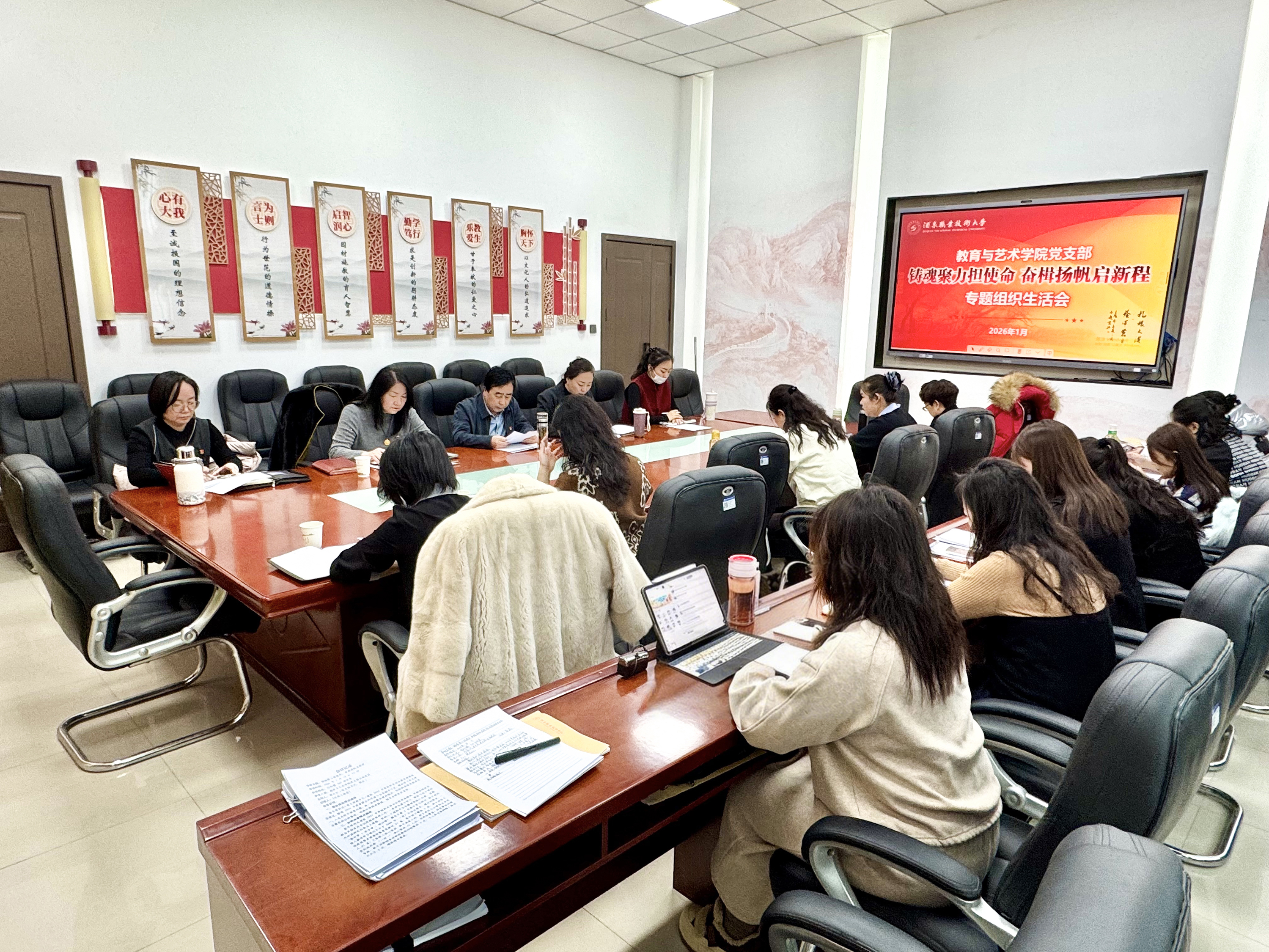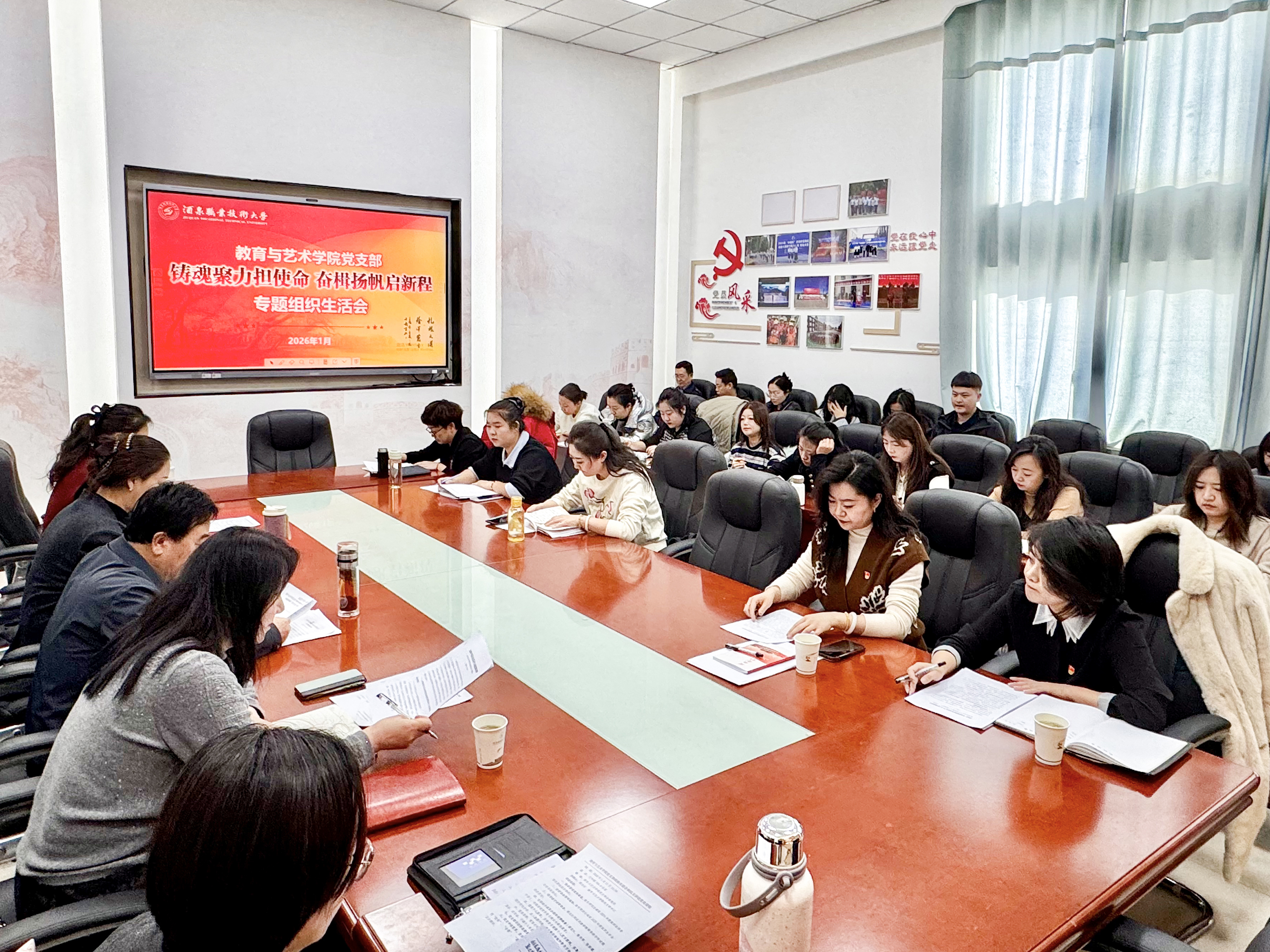 院系动态 > 正文为深入学习贯彻习近平新时代中国特色社会主义思想和党的二十届四中全会精神,切实加强党支部建设和党员队伍建设,根据学校党委统一部署,1月12日下午,教育与艺术学院党支部在行知楼704会议室召开“铸魂聚力担使命,奋楫扬帆启新程”2025年度组织生活会,并同步开展民主评议党员工作。支部全体党员参加会议,党支部书记梁志红主持会议。