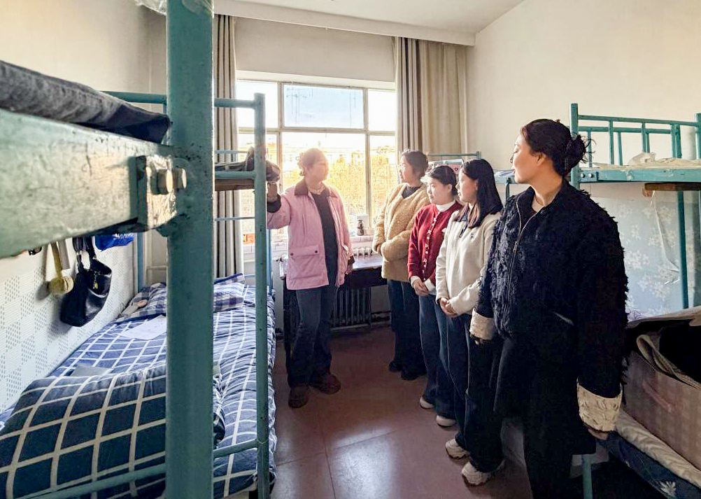 走访过程中,张冬琴、段君妍对学生宿舍进行逐一细致查看,重点围绕用电规范、消防安全及内务卫生三大方面开展检查,详细查验宿舍内电器使用情况、电路布设合理性及消防安全设施配备等情况,严厉排查违规电器使用、私拉乱接电线等安全隐患。段君妍现场强调,安全是实习工作的底线、更是不可逾越的红线,她反复叮嘱学生要严格遵守住宿管理相关规定,不断增强安全防范意识,主动提升应急避险能力,切实守护自身人身及财产安全。