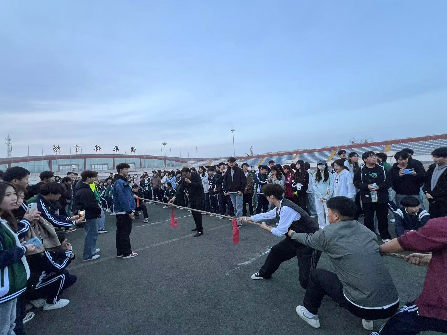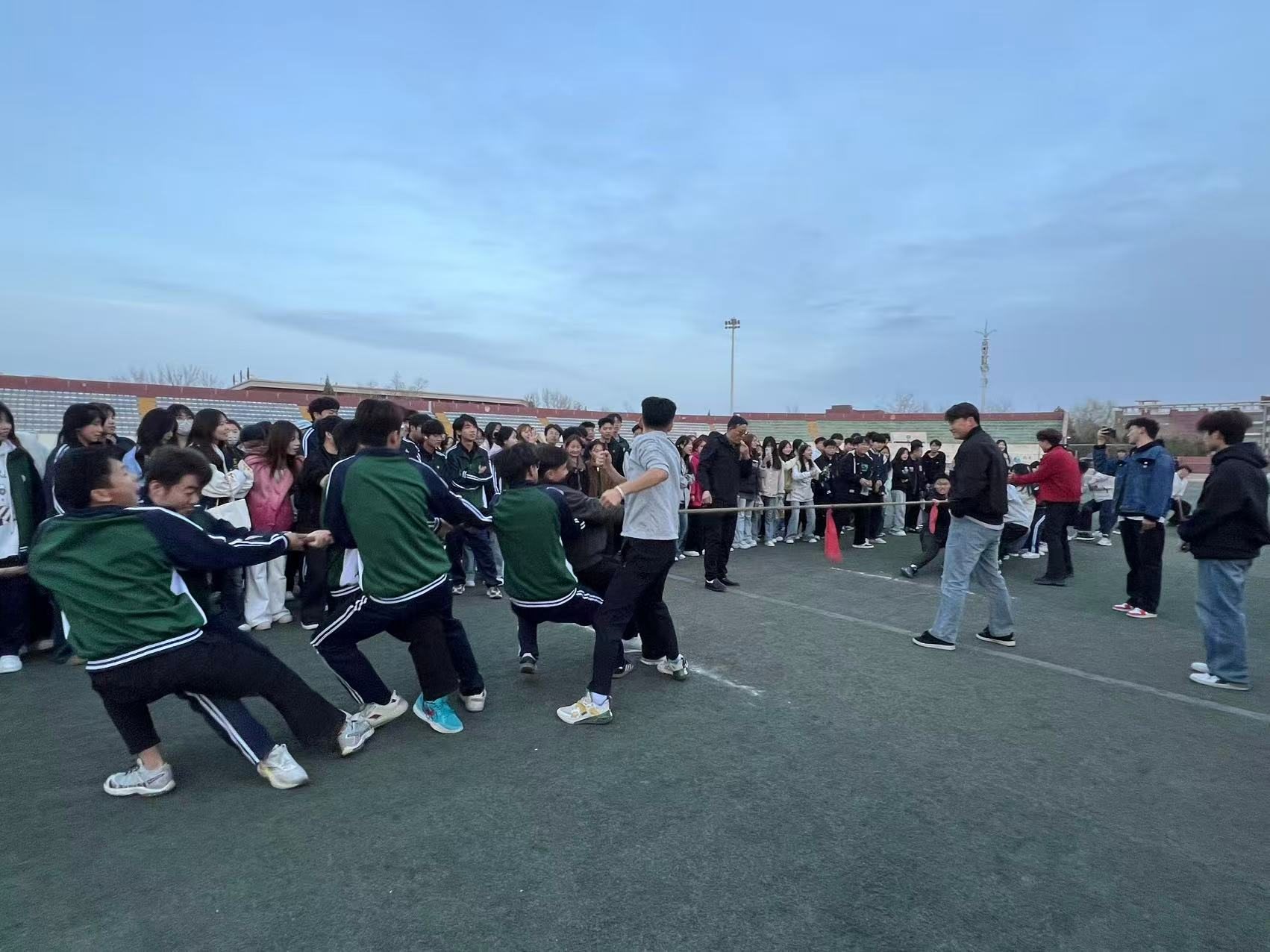 比赛伊始,各班级参赛队伍整齐列队,队员们精神饱满、斗志昂扬。随着裁判哨声响起,赛场瞬间沸腾,参赛选手们紧握绳索、重心下沉、齐心协力向后发力,绳索在双方力量的角逐中来回僵持。大家咬紧牙关、拼尽全力,每一次拉扯都凝聚着团队的默契与坚持,充分展现出不服输、不放弃的拼搏劲头。
