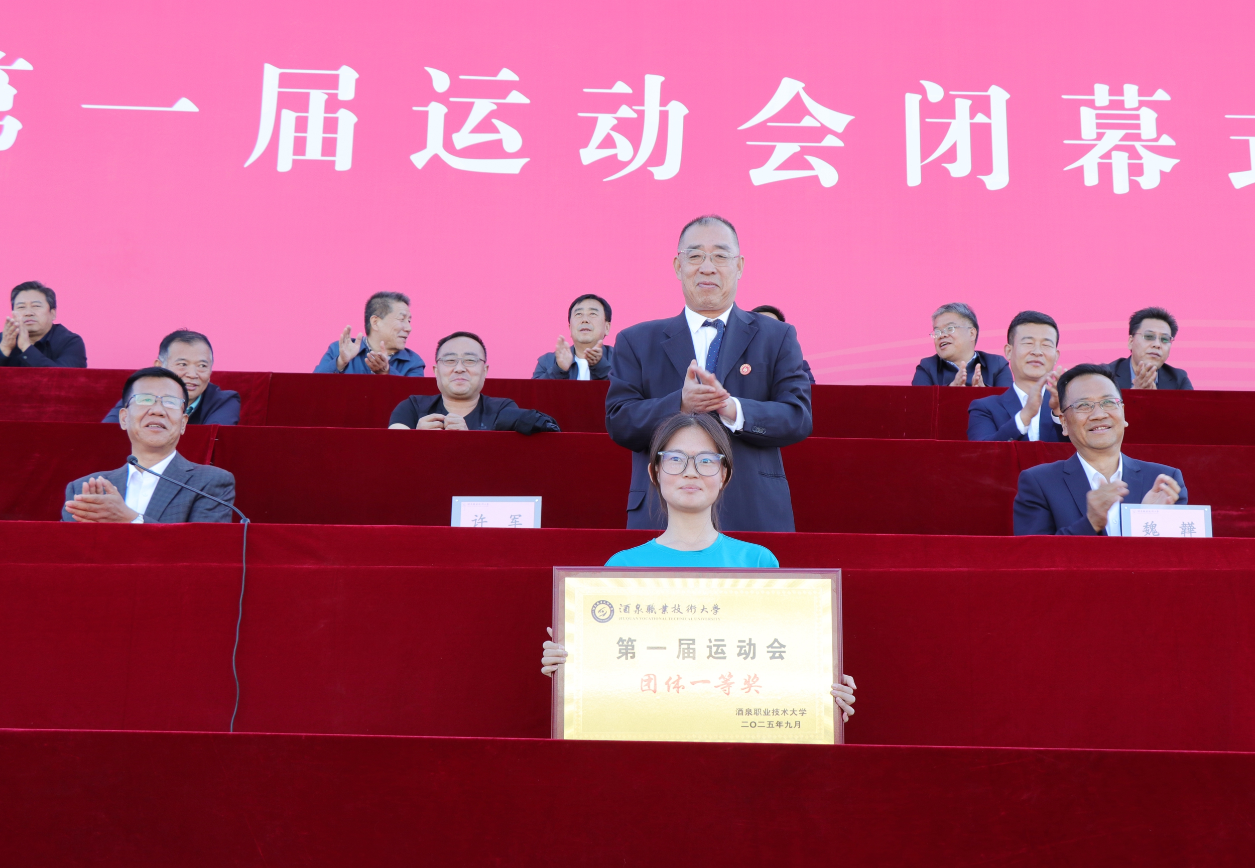 秋日赛场见证拼搏,奋进号角奏响华章。2025年9月29日,酒泉职业技术大学第一届运动会圆满闭幕。学校党委副书记、校长许军,党委委员、纪委书记、监察专员魏韡出席闭幕式。各学院师生代表、运动员、裁判员及志愿者齐聚现场,共同为这一盛会画上圆满句号。党委委员、副校长王金明主持活动。