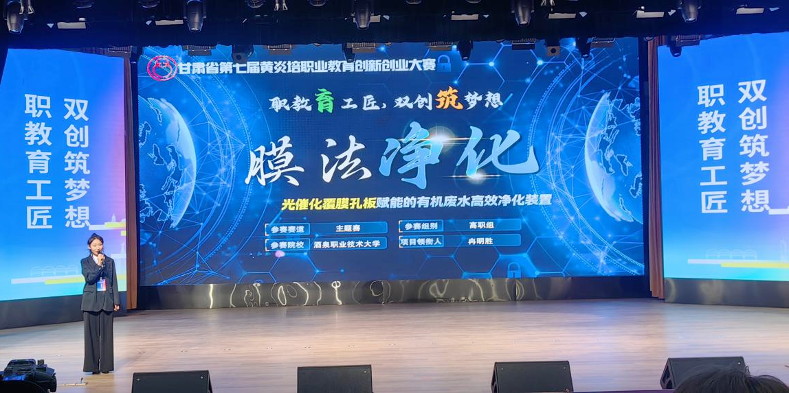 我校参赛的6个参赛项目获得一等奖1项,三等奖5项,其中《膜法净化--光催化覆膜孔板赋能的有机废水高效净化装置》项目以全省高职组第一的成绩入围国赛。学校荣获优秀组织奖。