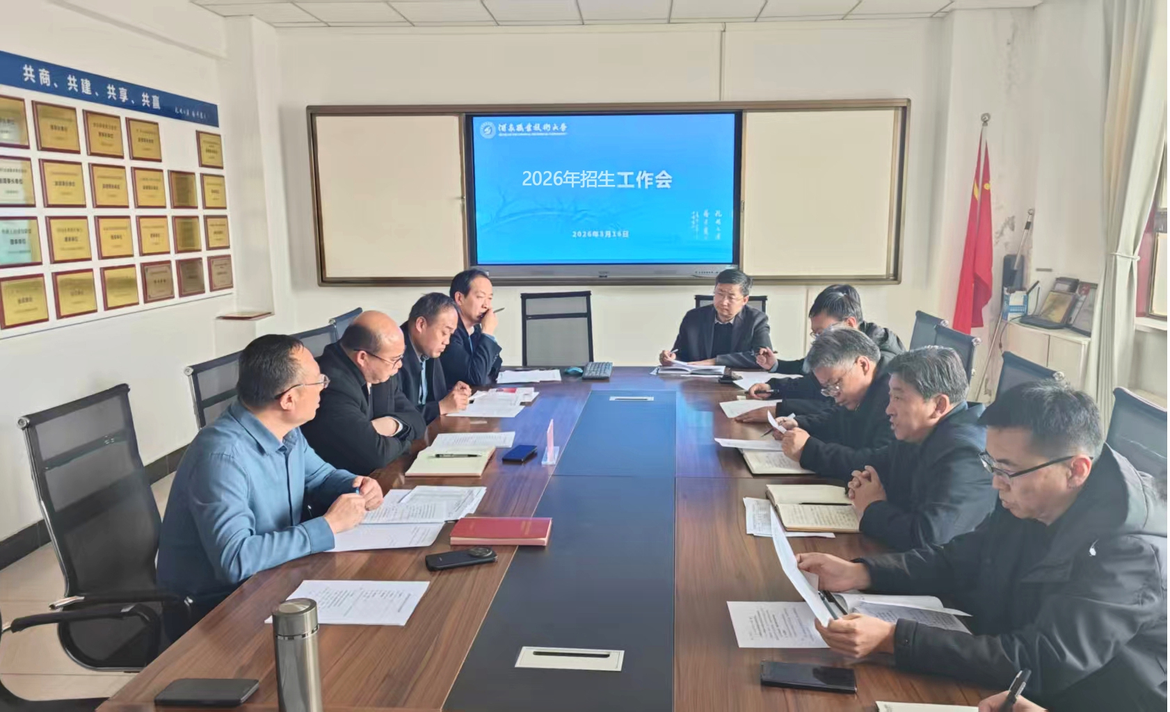 为切实做好2026年招生工作,分析当前招生形势,明确任务分工,确保招生工作有序推进。2026年3月16日下午,学校在行知楼二楼会议室召开2026年招生工作会议。党委委员、副校长杨洁出席会议并作总结讲话。宣传统战部、教务处负责人,各学院院长以及2026年综合评价招生宣传组全体成员参加会议。
